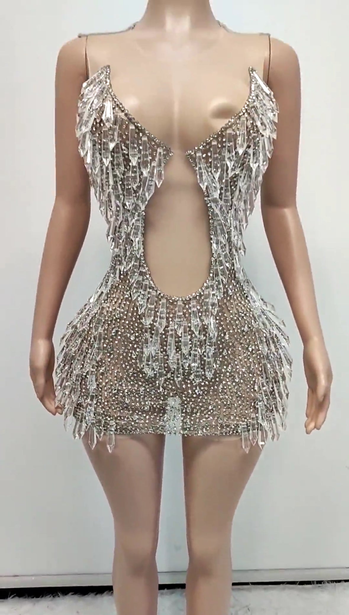 Introducing our stunning silver shiny nylon spandex back dress, perfect for any occasion. The dress is designed with a unique and stylish silver shiny nylon spandex material on the back, adding a touch of elegance to the dress. The dress is extremely stretchy and comfortable, allowing for a range of motion and a flattering fit